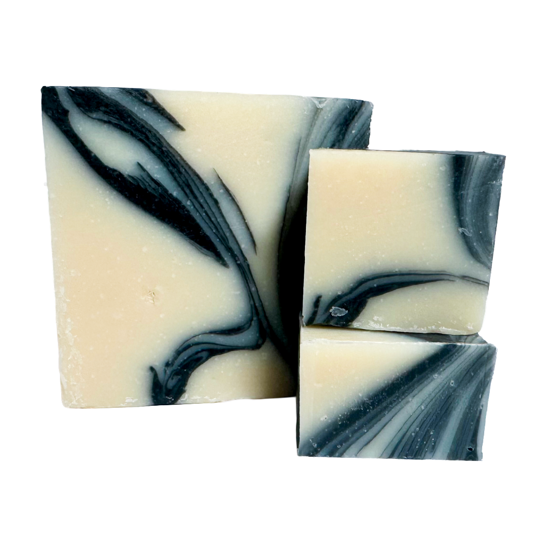 This bar carries a deep musk layered with light floral notes and grounded by warm sandalwood and patchouli. Activated charcoal runs through the bar, giving it a rich, dark color while helping to draw out impurities from the skin. The scent is classic, smooth, and unmistakably masculine—perfect for those who prefer traditional, woodsy fragrances.