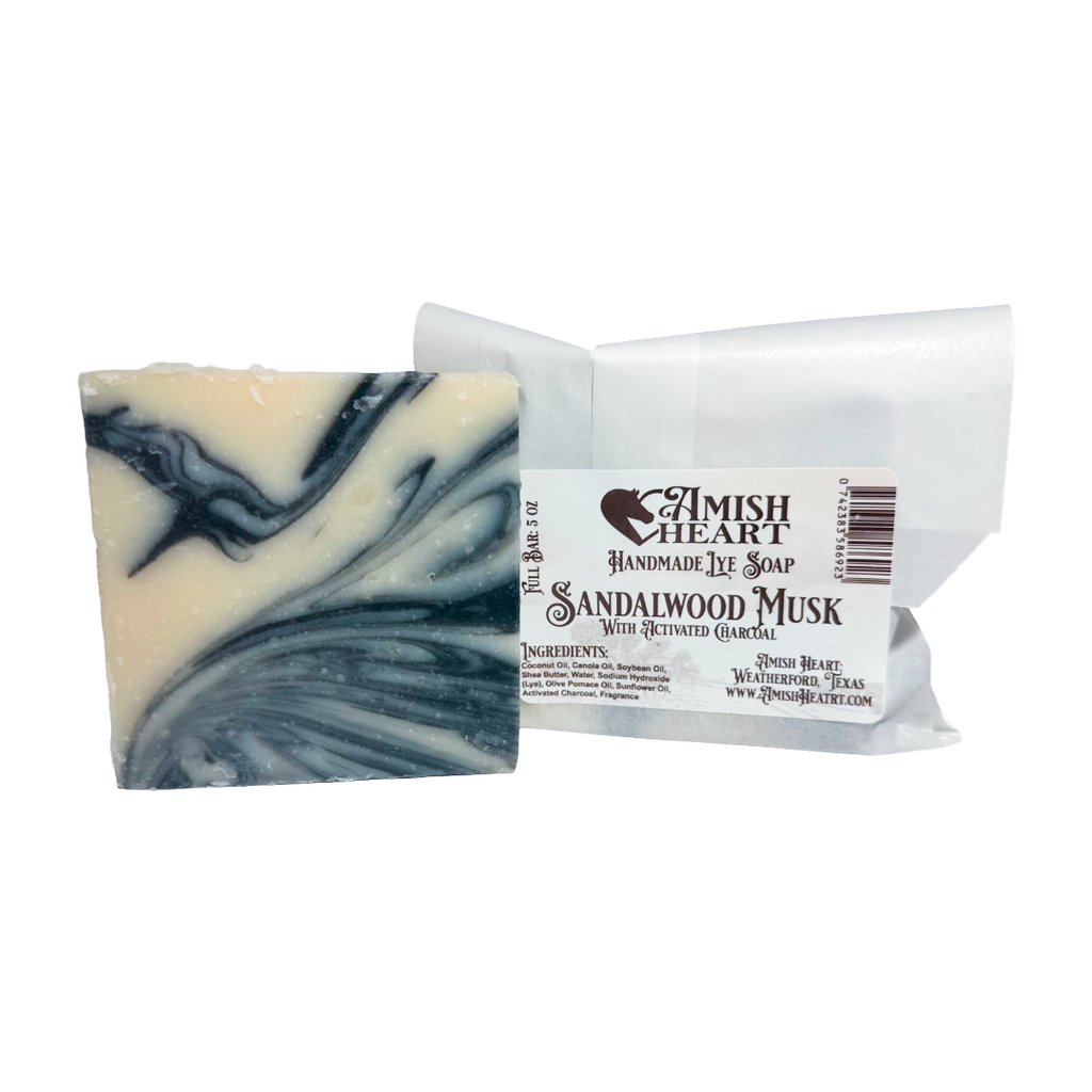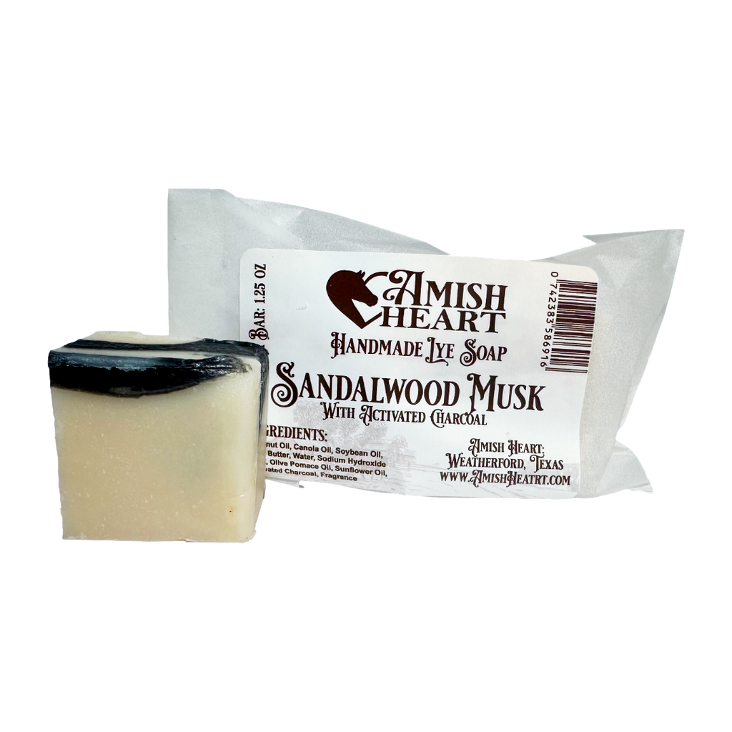 Sandalwood Musk Bar | Amish Heart | Charcoal Lye Soap