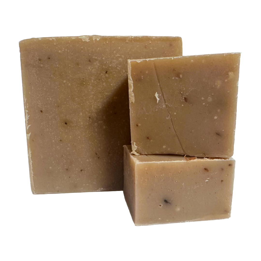 Available in our full-size 3x3x1 inch bar (approx. 5 oz) or a 1.5x1.5x1 inch mini bar—perfect for sinks, guest baths, or sampling. Both sizes last much longer than typical store-bought soap, thanks to our traditional cold-process method.